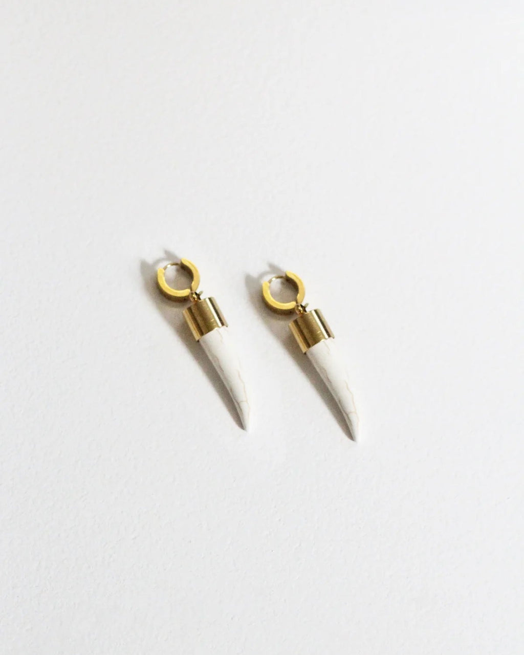 Inspired by the everlasting taonga of the Rei tooth or husk ornament, these earrings have been intricately fashioned from carefully selected medium-sized howlite stones, delicately encased in sleek stainless steel fixtures. Symbolizing both leadership and heritage, they exude an air of timeless sophistication and culture.